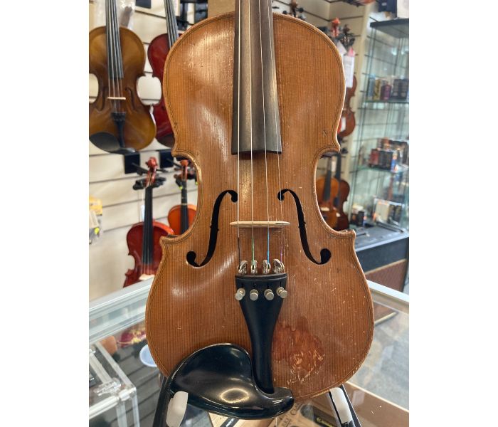 This is an old instrument and has signs of wear, but is in full working order. It has a patch on the front where it looks like a previous owner has tried revarnishing, but this is purely aesthetic and does not affect the playability or tone.